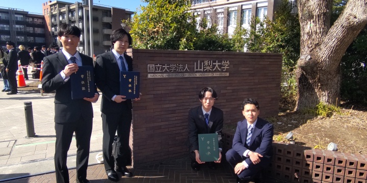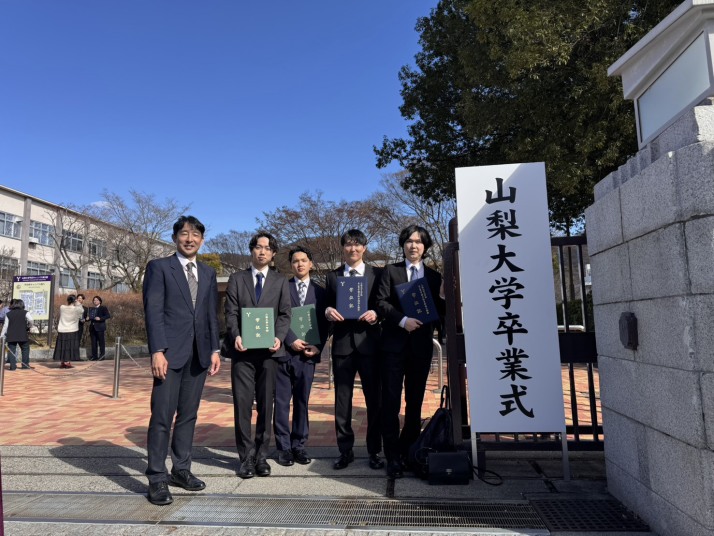 令和7年度卒業・修了式が行われ,本研究室からはLiu Yuさん,佐藤慮君,清水亮佑君が修士課程修了,河村俊吾君,丹羽耶舞斗君が学部卒業となりました.おめでとうございます!