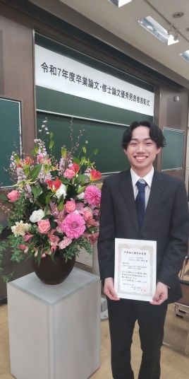西牟田君が修士論文優秀発表賞を受賞しました!おめでとうございます!!