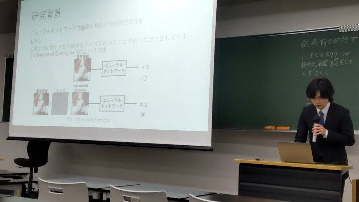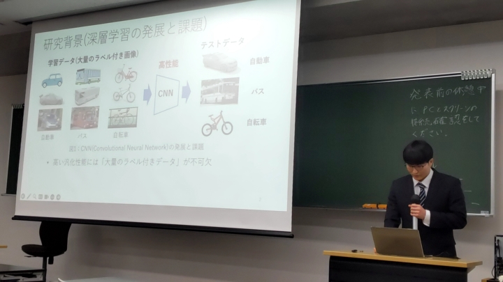 2024年度修士論文発表会が行われ,中村謙士君が2年間の研究成果を発表しました(2025.2.12).